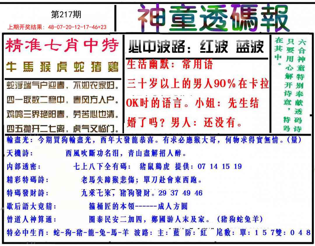 217期神童透碼報(bào)